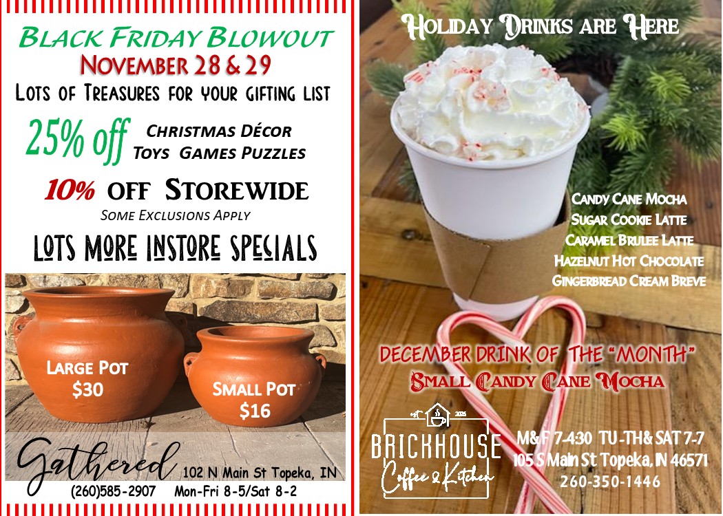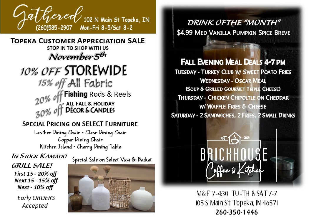 We're Gathered, your go-to local discount store in Topeka, IN. Our passion is hunting for the best bargains to share with you, featuring a vast selection of products, unbeatable prices, and new treasures every day. Born from a desire to supply our community with a top-notch discount shopping experience, we're dedicated to expanding our offerings to better serve Topeka and its neighbors. Come explore our aisles for apparel, housewares, toys, gifts, and much more! Stop by to discover unique treasures for every corner of your home!